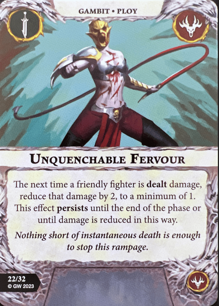 Unquenchable Fervour – This card is insane, as let’s be real, if this card is played, would you give your fighter +1 damage upgrades to kill the enemy? I won’t, that’s for sure. This card lets all of your fighters, including the little ones, massively reduce the damage of an attack, and it also stacks with damage reduction from Acrobatic! And don’t get me started on this card affecting the leader!