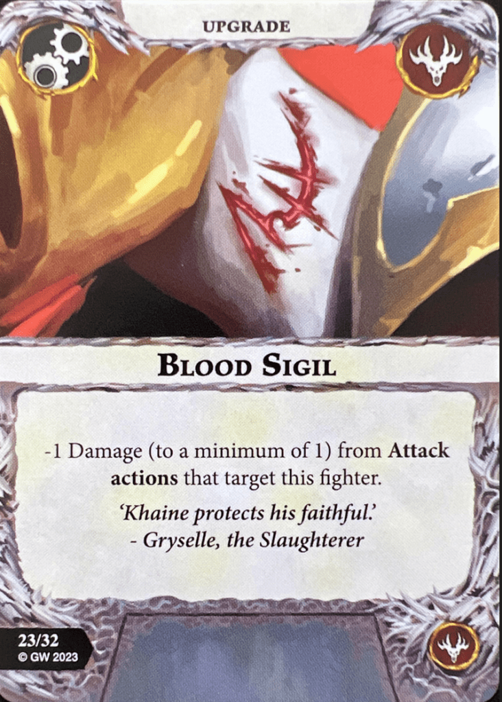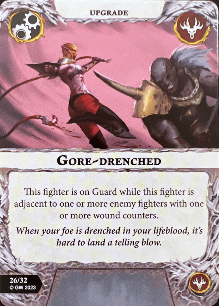 Gore-Drenched – You know all those objectives in which your fighters must go YOLO and run into the middle of enemies? This upgrade will let them stay alive for longer. It is kind of situational with the ‘adjacent to an enemy fighter with one or more wound counters’ part, but let’s be real, that’s not very hard to achieve.