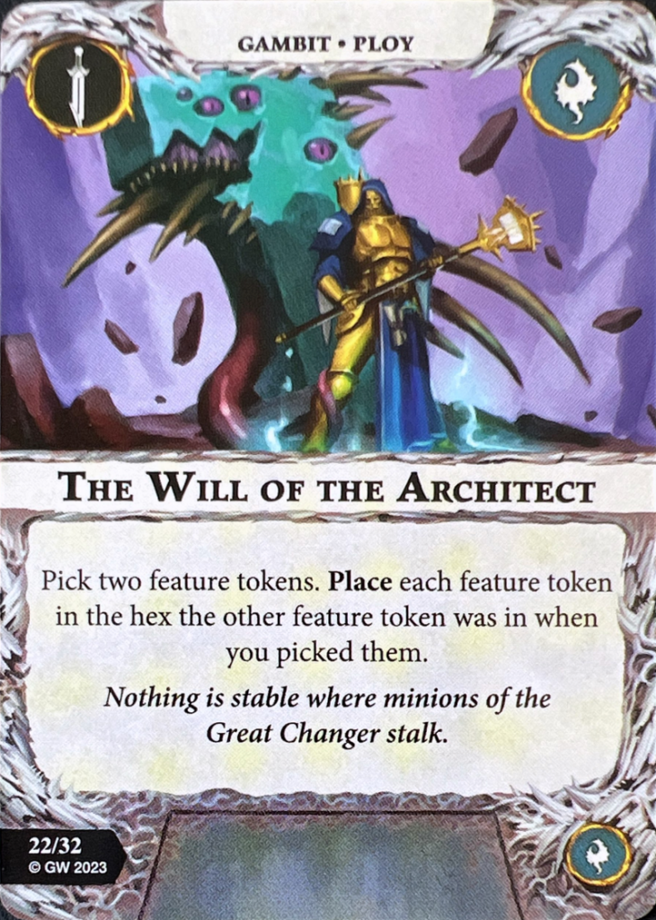 The Will of the Architect – Literally Dark Inversion. I can see this being used when running it alongside Nine Fates and Stockpile, or even Tactical Supremacy! You can also switch objectives with the Fearsome Fortress token when playing against Fearsome Fortress, and deny a bunch of hold objective objectives by delving and sending that token to your opponent as a gift. There are lots of uses, but a lot of them are only useful when playing hold objective or against it. However, considering that Fearsome Fortress is getting a lot of popularity recently, this might be worth running soon!