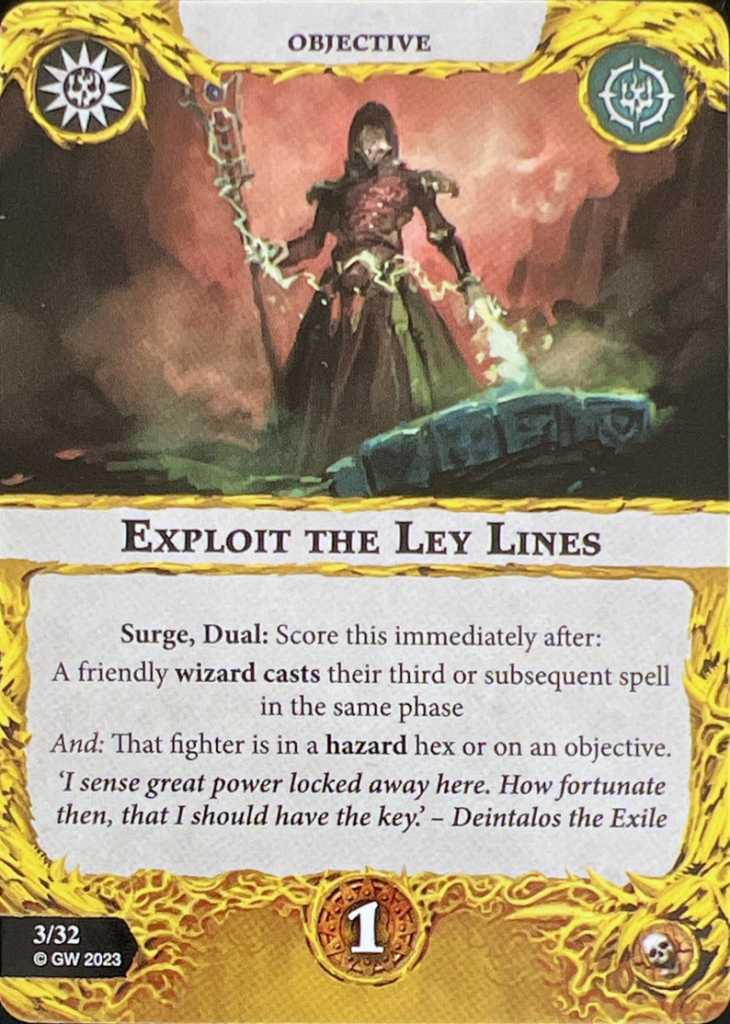 Exploit the Ley Lines – Have a wizard cast their third spell in a round on a feature/hazard hex. The hard part is obviously getting a wizard to cast 3 spells in one phase. This can be pretty unreliable, especially if you are just plain unlucky, as not all wizards have spell attacks to help score this, meaning for most warbands, you will need to invest in gambit spells and/or spell attack actions. For some warbands, this can work quite well, but for most, this card just doesn’t seem good enough.
