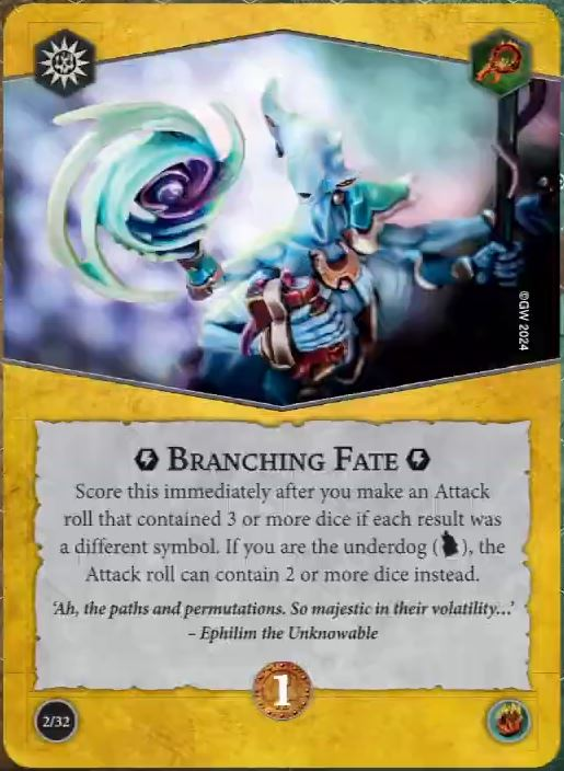Branching Fate: A surge from the past – this card got better in the new edition. Rolling 3 dice and having them all be different was not too hard already, but rolling 2 dice should be trivial! Once again, the issue arises with a non-deniable luck based surge.