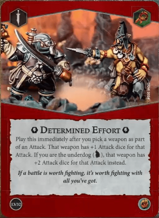 Determined Effort: It’s back and with a buff! Now, if you are Underdog, you get 2 dice instead of 1! Overall, a pretty big buff. +2 Dice is huge! This card will definitely see play.