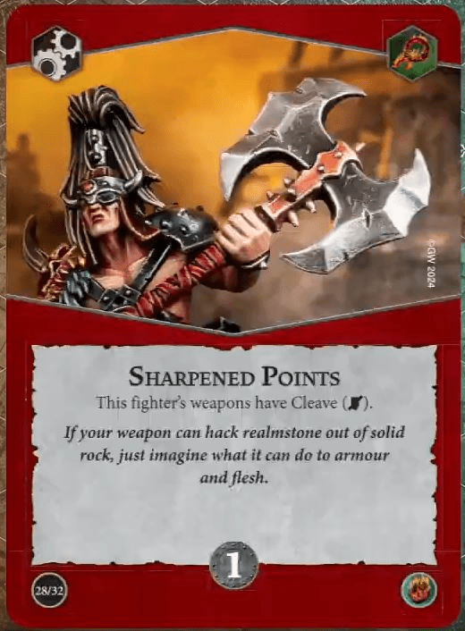 Sharpened Points: Considering that the entire Stormcast warband as well as the Doomwheel defend on Shields, this card is really good. Cleave has historically been powerful but especially now.