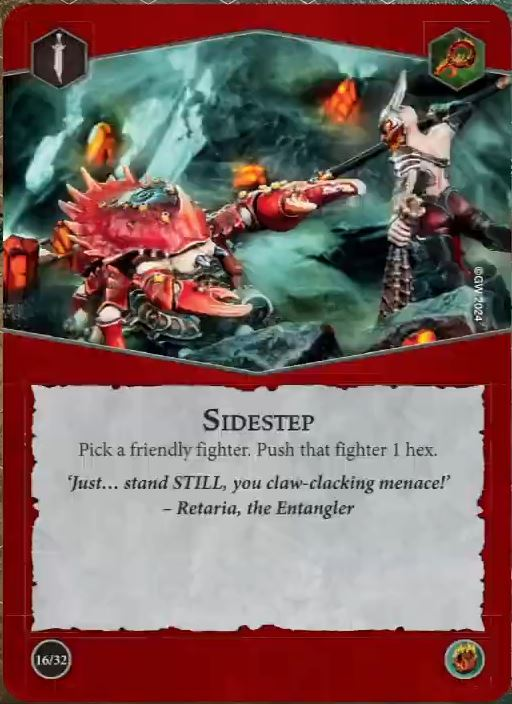 Commanding Stride: A 3 hex push for your leader. Pretty good overall, it’s sad that it STILL isn’t salvageable but at least it can be Focus-ed away if your leader is dead.