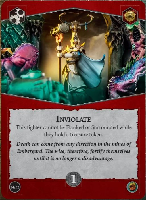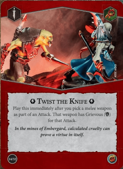 Critical Effort: This card is absolutely bonkers. While in theory it is quite easy for a player to understand, which was the aim of the new edition, it’s a 100% undeniable, uncontrollable surge. You can’t control when you roll a crit! This makes it either very trivial or very difficult for most warbands. The attack doesn’t even have to hit!