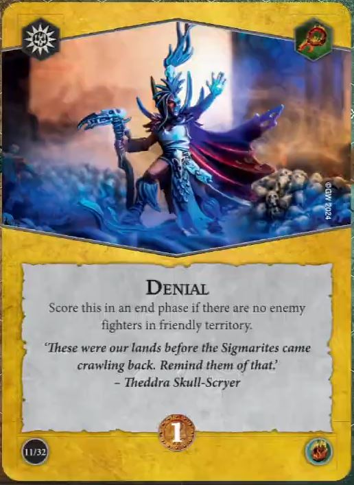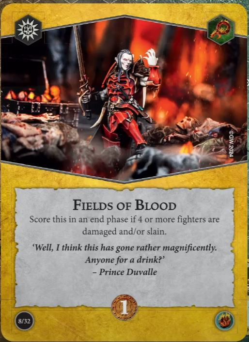 Fields of Blood: This is honestly one of my favorite objectives from this deck, It’s pretty simple and the condition will pretty much always be met. You can score it by damaging your own fighters (assuming lethal hexes still exist) or by damaging enemy fighters. It’s also 1 glory, like the rest of the deck.