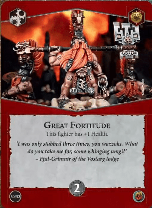 Great Fortitude: Once again, same as the aggro deck. Here it might once again be more useful as HO warbands tend to hate dying a little more than aggro warbands.