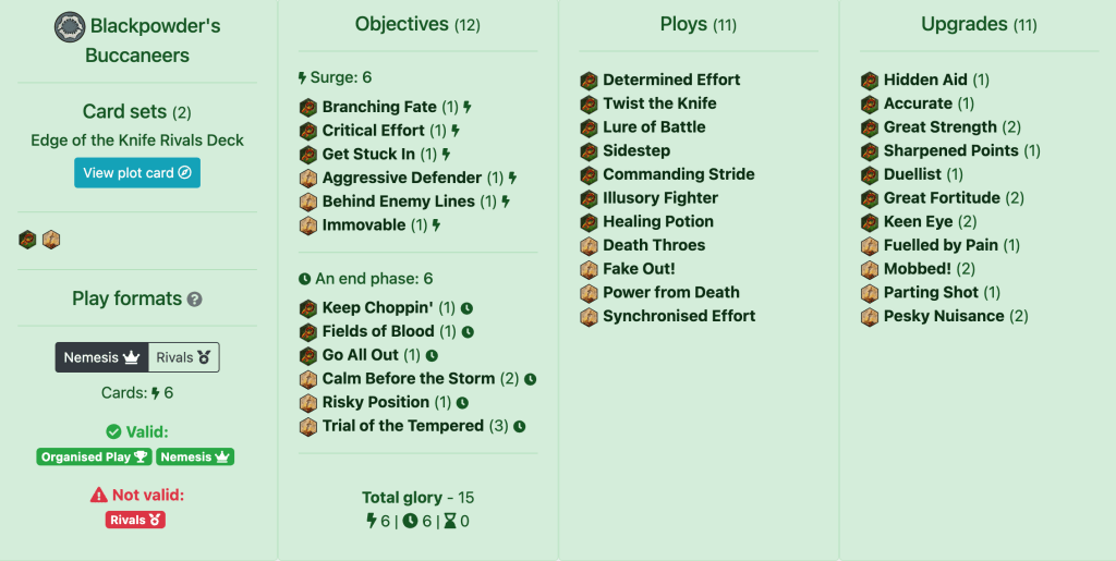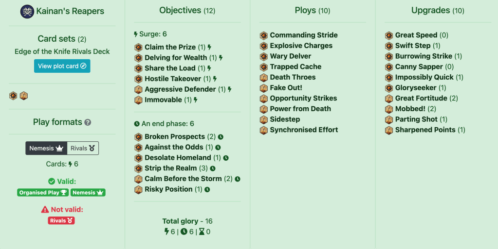 Guard is the only warband who I found that can leverage this pairing to some effectiveness. I’d love to be proven wrong though, so if you do find a warband that can do this please do show me your deck! (and submit it onto the Nemesis Deck Repository on our Discord)