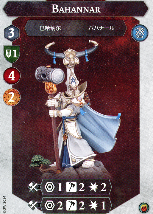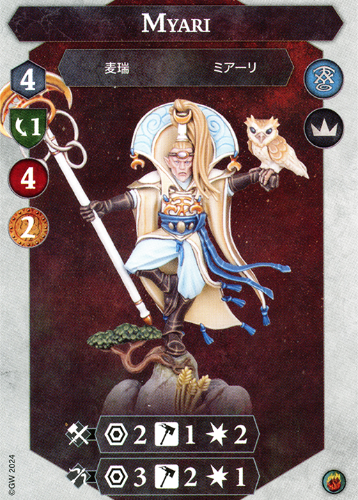 Ailenn is generally the second most scary. She is hyper accurate due to her Aetherquartz token giving her Flanked on all her attacks. However, she doesn’t do 3 damage baseline as Bahannar does. This means warbands that rely on their high defense like Thorns may consider killing Ailenn first and Bahannar later. There are also cases for killing Myari second, mainly if your warband consists of Range 1 heavy fighters who want to brawl (like the Krushas). This is due to Myari’s superior Range 2 attack dealing 2 damage. Ailenn will charge into you, but Myari will not!