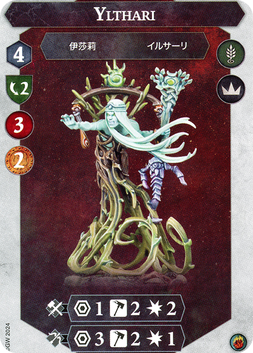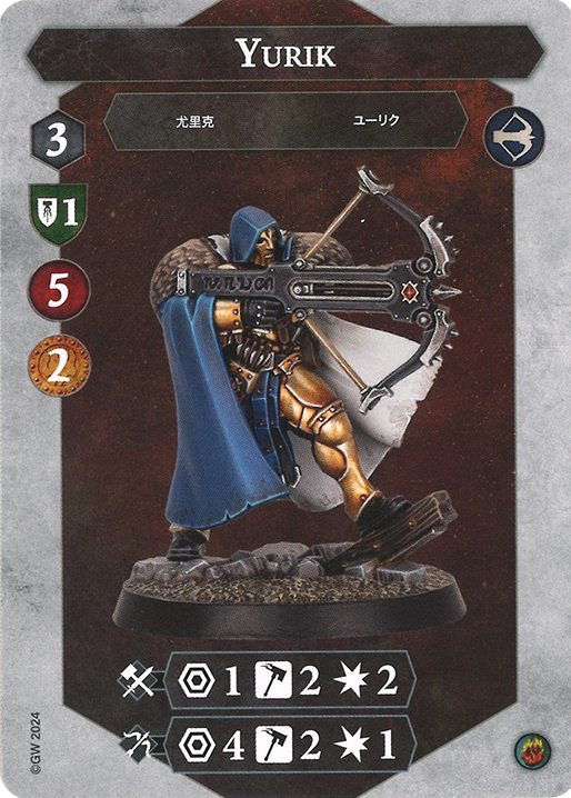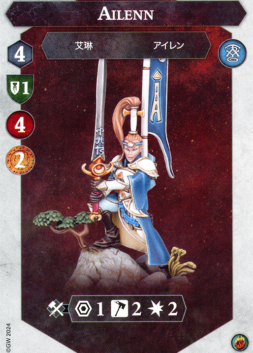 Myari is definitely a strong fighter but outstatted attack-wise by the other 2 elves above. This means he is typically going down third. Once he burns his Aetherquartz he becomes really easy to hit, so keep that in mind! He may sometimes be easier to earn bounty from than others. His main power comes from his 2-2-2 attack when inspired which may be scarier for some warbands than the Range 1 threat of Ailenn, so consider how big of a threat is the ranged damage for you. Melee warbands will want to kill Ailenn 3rd, as she is a much bigger threat than the archer, even though the archer can always damage you. Senaela just does not do enough damage to be a threat!