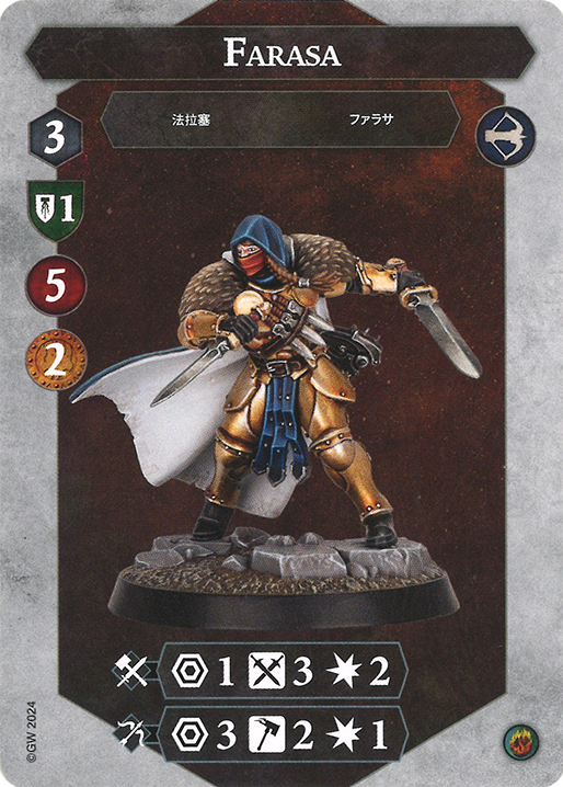 Ben: Then Farasa, because she is the only one I painted so she needs to be on the board the longest because she has 2 shields and the least accurate attacks.