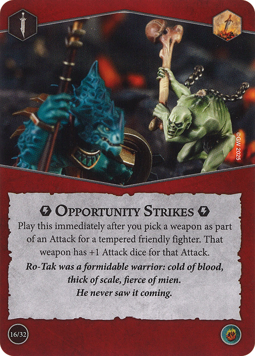Opportunity Strikes – Another source of extra attack dice? What’s not to like? It’s locked behind tempered, but you can use it immediately after Scream of Anger for great effect.