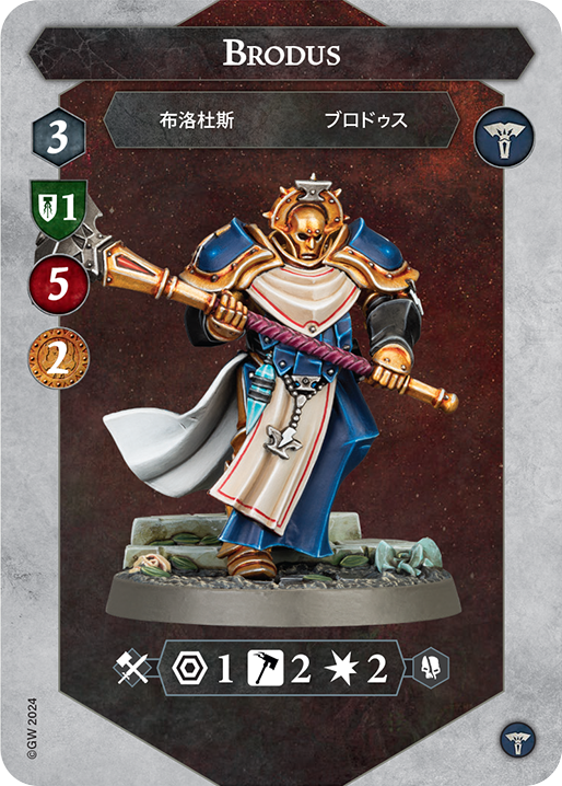Aethericaly Charged Shield: So there’s a reason Bladecatcher is forsaken. Turning off grievous at will is super powerful. Timing here is key. The active player must make any “after picking a weapon” choices first, so that means the attacker has to play Twist the Knife BEFORE you decide to use this ability. Not only are they now not killing a guy they thought they were, they lost arguably one of the better ploys in their deck. Brodus can’t use it sadly which means he tends to be first up against the wall on your opponents target priority, but if you can put the other two into scary positions they can leverage this incredibly well.
