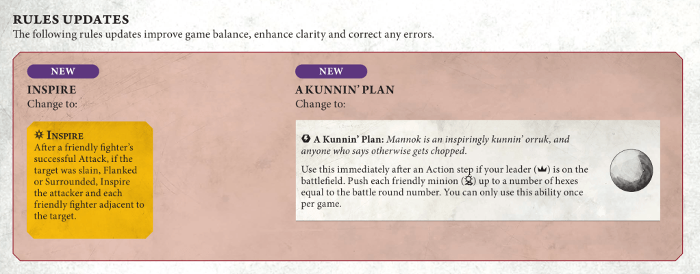 Da Kunnin Krew got some kunnin’ buffs . The inspire now only works if the target was slain or as usual. And A Kunnin Plan no longer needs a move action to be activated.