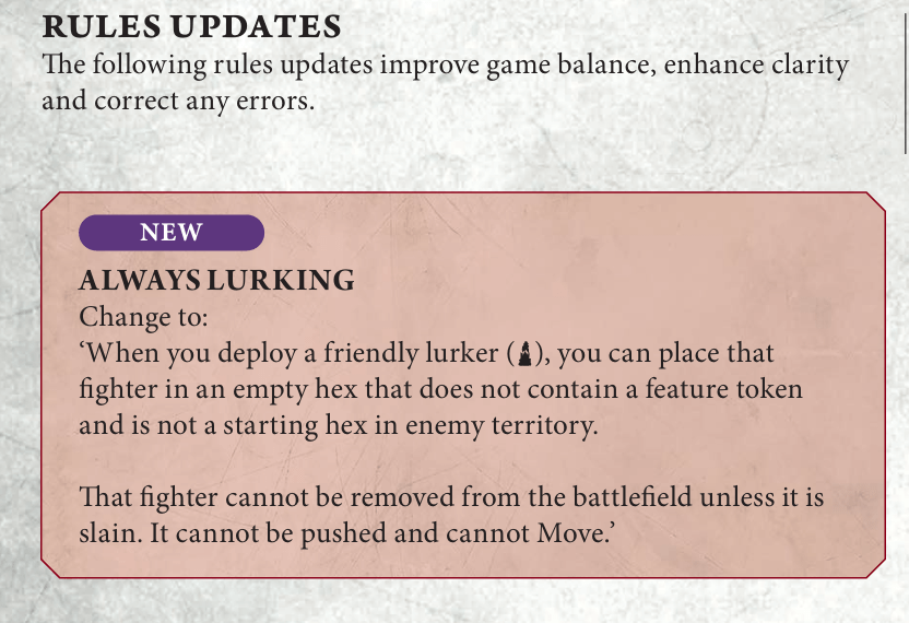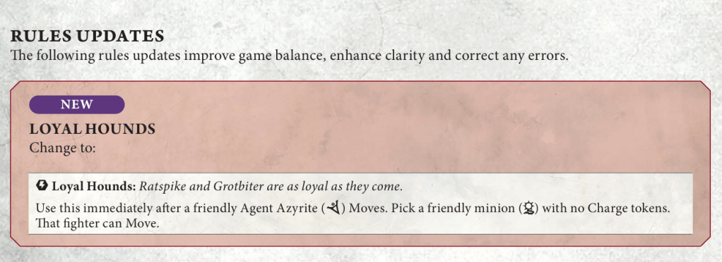 Hexbane got a WILD buff (all V1 players are shaking now). The dogs NO LONGER cannot move if they have a move token. They now only cannot use Loyal Hounds if they have no CHARGE token.