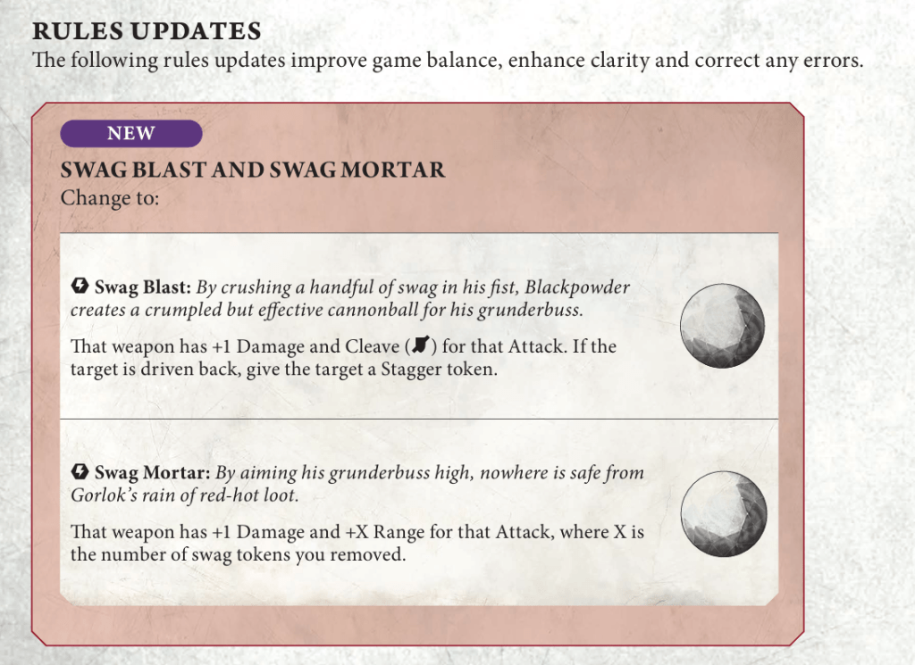 - He now has the only Range 3 2DMG attack in the game. This is a huge boon for the pirate ogre and now makes Swag gathering actually kind of fun!