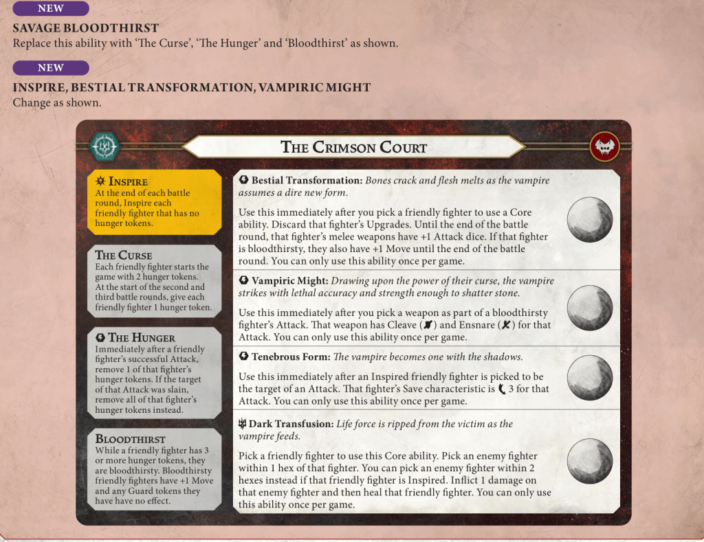 - Bloodthirst fighters exist if they have 3+ tokens and can’t be on Guard and get +1 Move.
