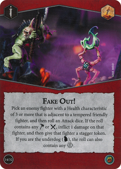 Fortune Faded – an arguably worse version than Fault Lines. Why is it in the same tier then? Because you can choose which of your fighters gets pinged. Also, you don’t have to target an undamaged fighter. This makes it a consistent way to get damage out. A pretty big caveat is the fighter who gets sent to ‘fade the fortune’ of an enemy is dead to rights – and they will probably get punished for it. This card basically trades out a fighter, but it’s a little harder for you to get your end of the bargain than for your opponent. This keeps it in high C-Tier, very close to a B-Tier ping.