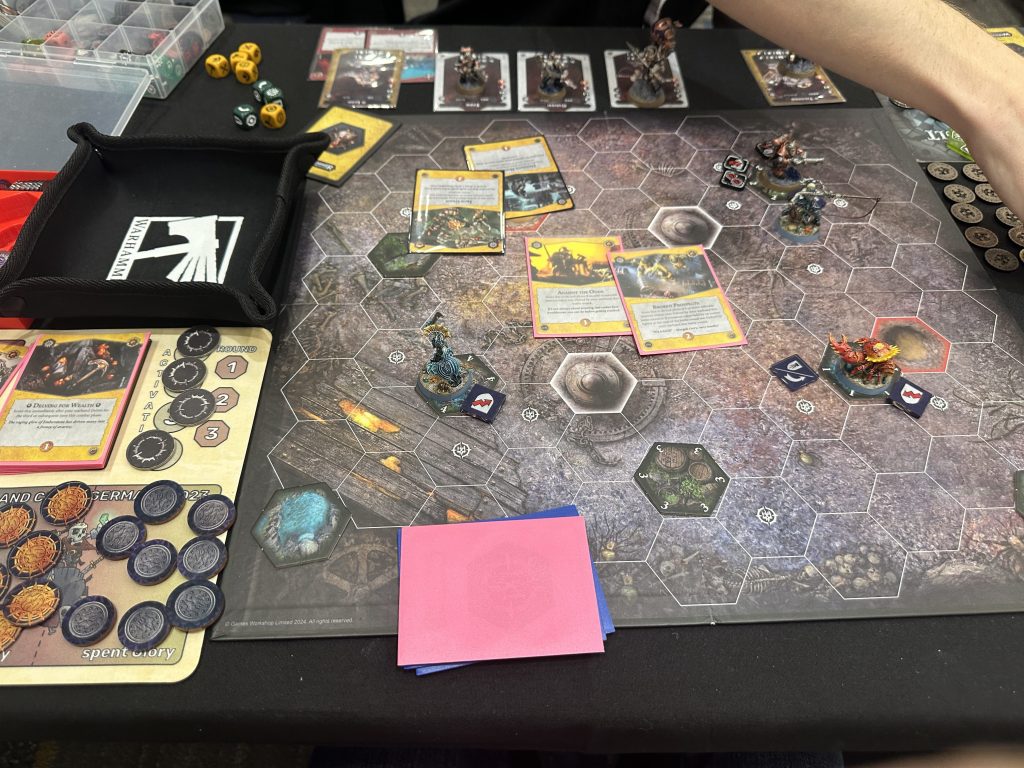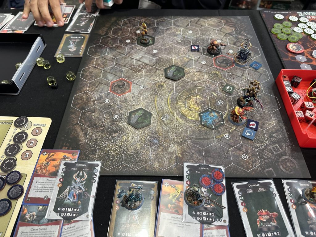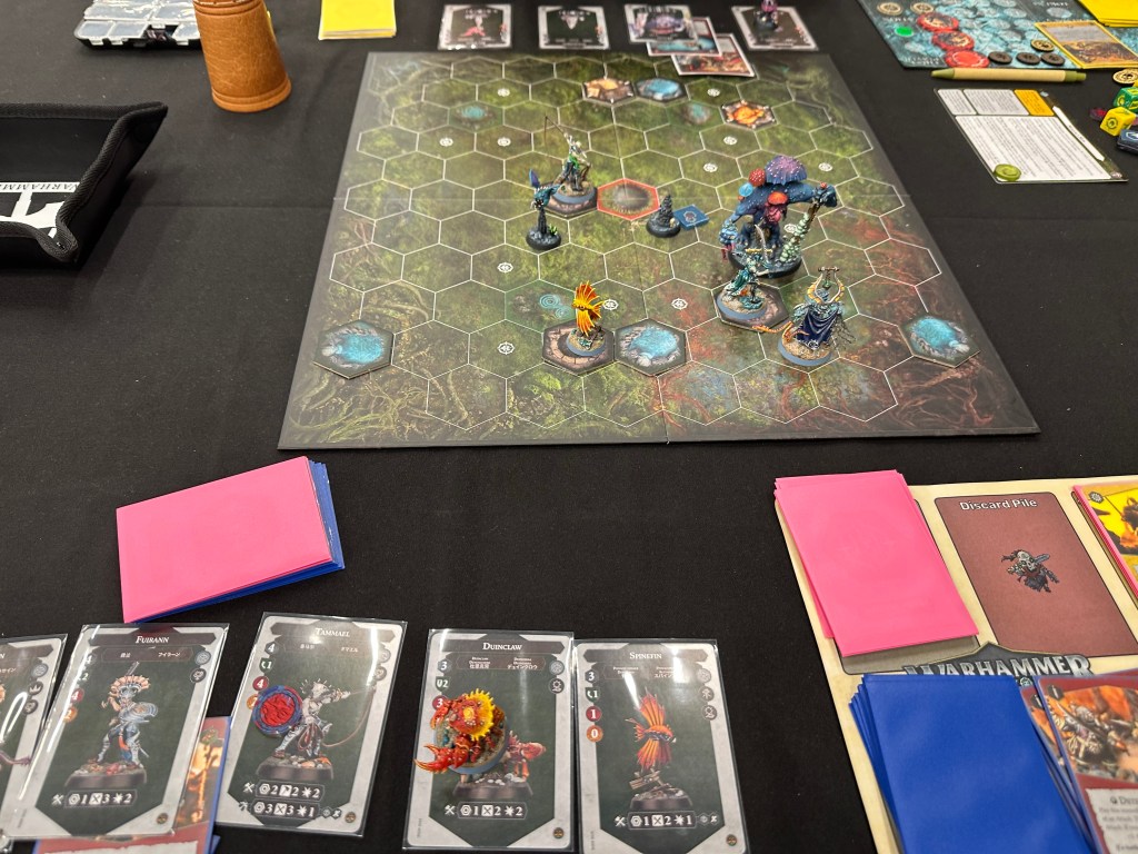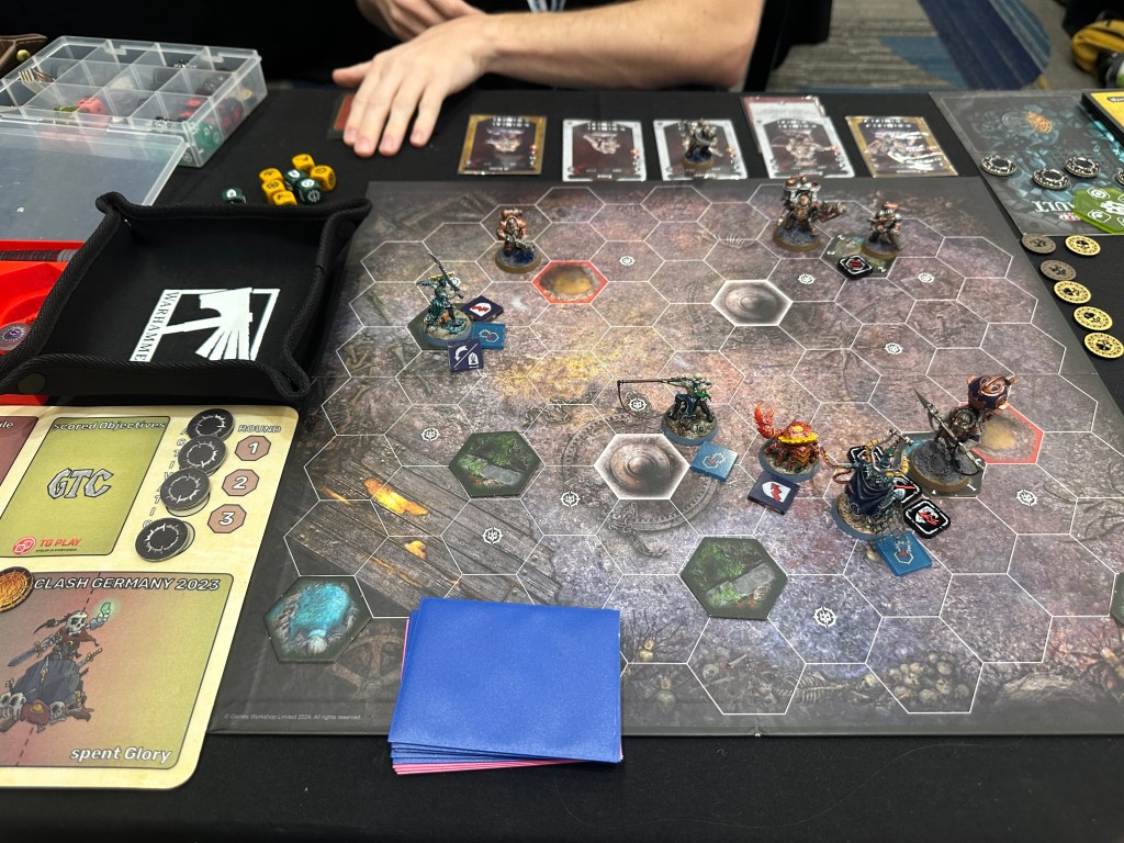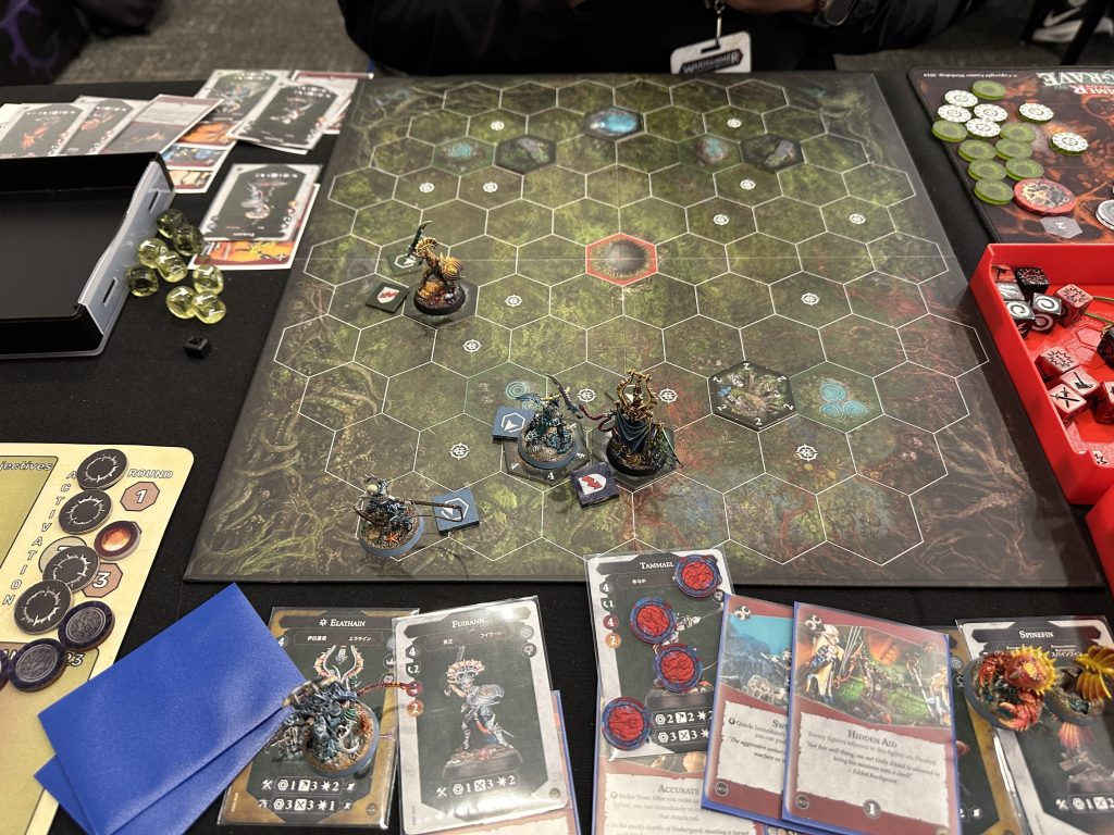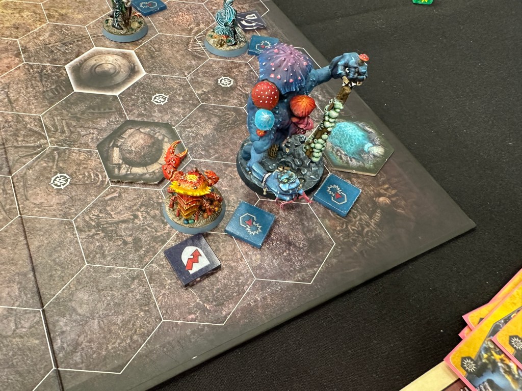 “Let’s try that again. Kill the troggoth during High Tide!” This time, the Idoneth knew what to expect. Some of the Mollog’s minions attempted to Outmuscle the elves early on, but their lack of Unity made it hard. A Trapped Cache exploded near Mollog and Tammael managed to stick a well-aimed Harpoon into him, but unfortunately Mollog was able to fully regenerate with his healing powers. But Mollog’s Prospects were already very broken.