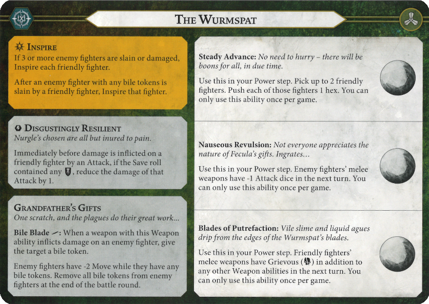 The Faction System has several downsides that must be addressed. The Gorehulk in the room, for instance – HOW BIG OF A CHANGE TO WARSCROLLS IS THIS? Where is all this going to be published? There’s over 50 playable warbands in the game and if each of them got a certain restricted card value assigned to them the document that will be published to show these values will be gigantic!