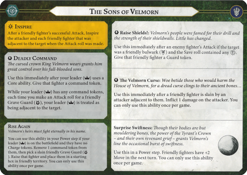 Michael: Before I begin – guys, this warband is NOT bad. Especially after their buffs. I am genuinely losing to them more often than winning (at the time of publishing this is no longer true). Maybe it’s a skill issue but I’d love tips! With this mini-rant out of the way – I’d argue Velmorn needs to leave the board ASAP. This isn’t always possible due to his high save when inspired and usefulness to the warband making him often get deployed at the back, but the pipe dream involves Velmorn’s ‘eternal lineage’ to end. With his Command Counters being permanent now and being crucial to the Raise to work, this is doubly true.