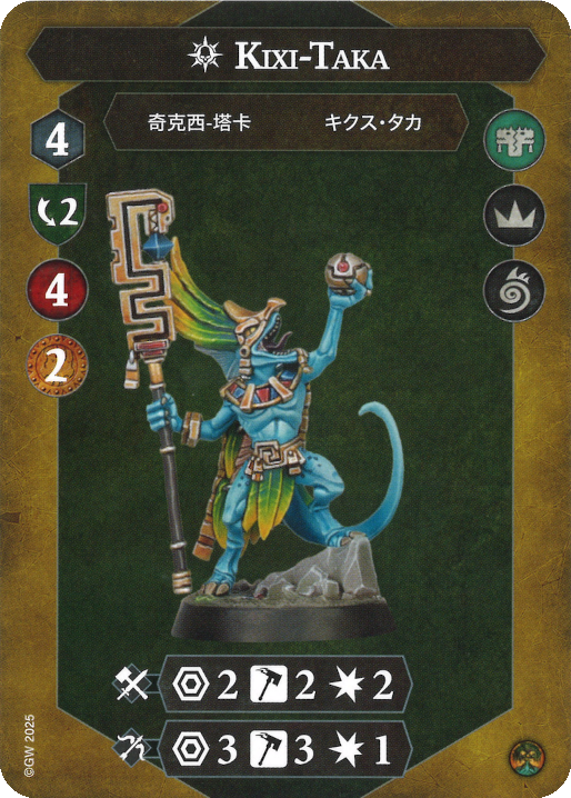 Ben: The second target in this warband is Kixi-Taka, as they have a range 2 attack that hits for 2 damage and the most accurate range 3 attack, while giving 2 bounty on a kill. Removing the 2 bounty body is also very useful when trying to deny Supremacy and killing her makes the warscroll ability “The Diviner” unusable.