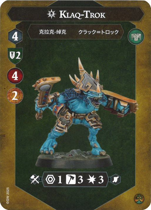 Ben: I have had some experience playing these and the most best fighter to kill first is Klaq-Trok. He is the most threatening fighter by far, especially inspired, and killing him round 1 while he doesn’t defend on 2 shields and hits on 3/4 hammers with cleave is very useful.